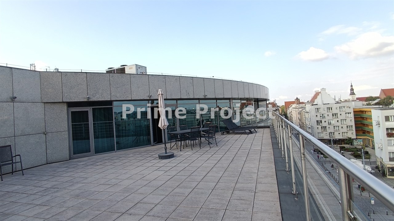 Lokal składają się z przestronnego salonu połączonego z aneksem kuchennym, trzech sypialni, dwóch łazienek, dużej garderoby oraz ogromnego tarasu z widokiem na stare miasto.